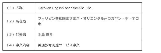 英語関連事業を運営する株式会社レアジョブ(以下、レアジョブ)は、フィリピン共和国(以下、フィリピン)にて英語力評価(アセスメント)機能に特化した子会社RareJob English Assessment , Inc.(RareJob English Assessment)を立ち上げます。