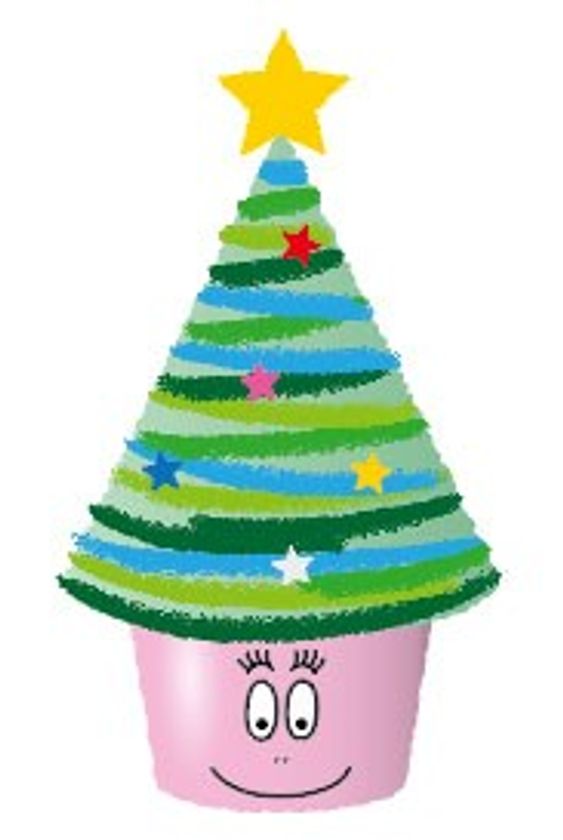 毛糸を巻いて作ったクリスマスツリーと鉢に変身した「バーバパパ」でデコレーション!