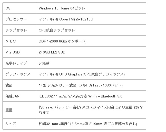 ●製品名:STYLE-14FH056-i5-UCSX [Windows 10 Home]