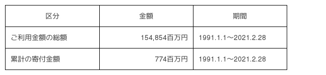 本カードは、1991年の発行開始以来、カード会員さまのご支援・ご協力によって支えられ、おかげさまで30周年を迎えました。この度、2020年度の寄付額が確定しましたので、お知らせいたします。