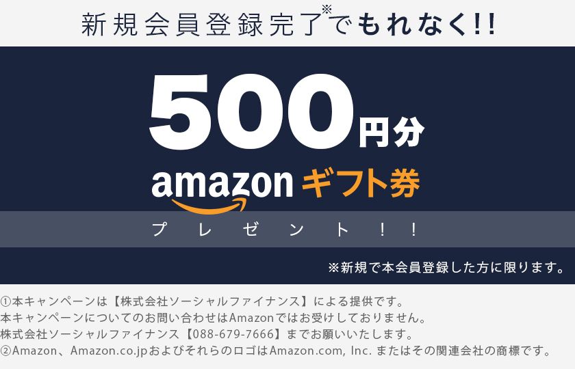 8月23日までに新規会員登録完了された方に、もれなくAmazonギフト券500円分をプレゼントいたします!