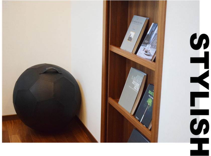 運動用のバランスボールに見えないのでインテリアとして、リビングや寝室、書斎など置く場所を選ばず快適なひとときを演出する逸品です。
