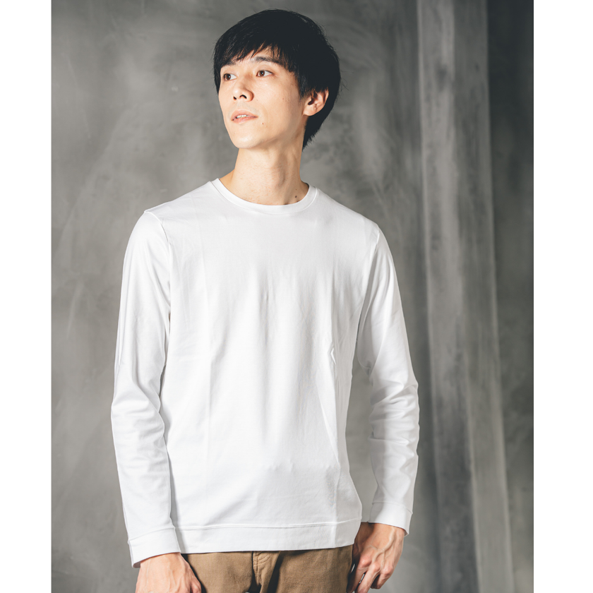 【大人のドレスTシャツ】スビンプラチナムスムース スリムフィット 長袖|クルーネック