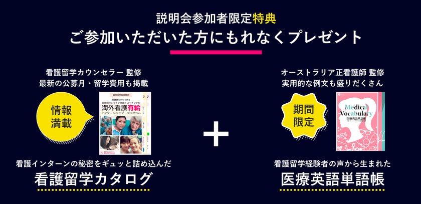 海外看護有給インターンシップはオーストラリアの看護・介護の現場でアシスタントナースとして有給で働くことのできるワールドアベニュー限定の留学プログラムです。他にはない留学プログラムとして15年以上にわたり高い人気を誇っています。説明会では渡航前の英語学習カリキュラムや準備スケジュール、渡航後の流れなどをご説明いたします。また留学経験者をゲストにお招きして海外の看護・介護現場で働くことや帰国後のキャリアをイメージしていただけるお話しをしていただく予定となっております。