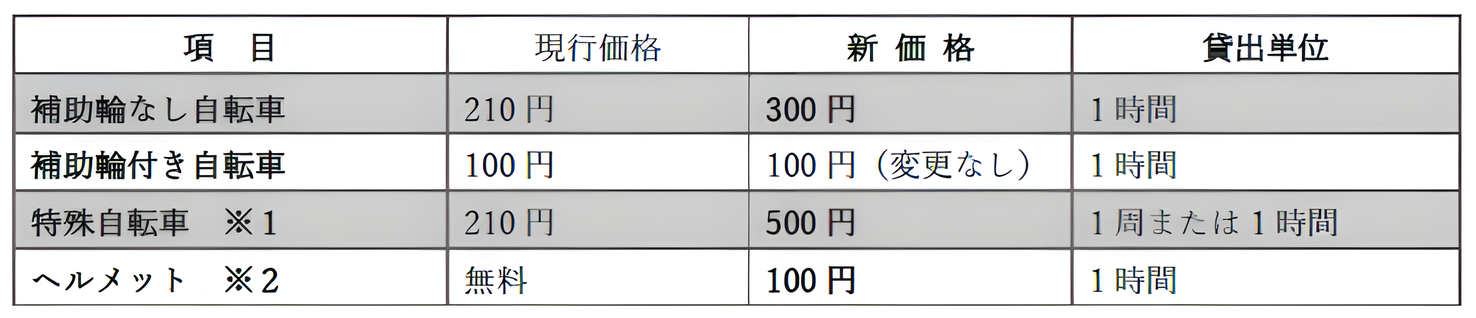 ※2・・・今後、ヘルメットは有料となります。ヘルメット持参へのご協力をお願いします。