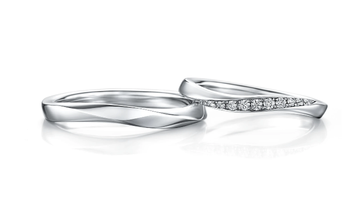 どちらかが笑えば、もう一人も微笑む。鏡のようなパートナーシップを象徴する、夫婦愛を歌ったオペラ戯曲の名を持つマリッジリングです。互いのウェーブラインを反転させることで、ふたつのリングを向かい合わせると、ハート型になる仕掛けが。どの角度から見てもキラキラ輝く華やかさと、指を長く見せるシャープさをあわせ持った日常使いしやすいデザイン。ともに年を重ねながら、いつまでも微笑みあえるご夫婦でありますように。