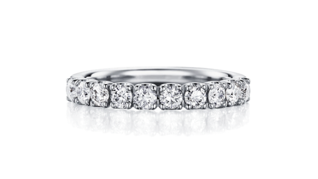 大粒のメレダイヤモンドが10石並んだ、月の女神の名を持つハーフエタニティリングです。きらめきに満ちながらも、落ち着いた存在感があり、印象は上品でエレガント。石座で包み込むようにセッティングすることで、引っ掛かりにくく、普段使いしやすい設計になっています。リングの内側には、寄り添うハート型の窓が。エンゲージリング、マリッジリングとしてはもちろん、特別なアニバーサリーにもふさわしい普遍的なリングです。