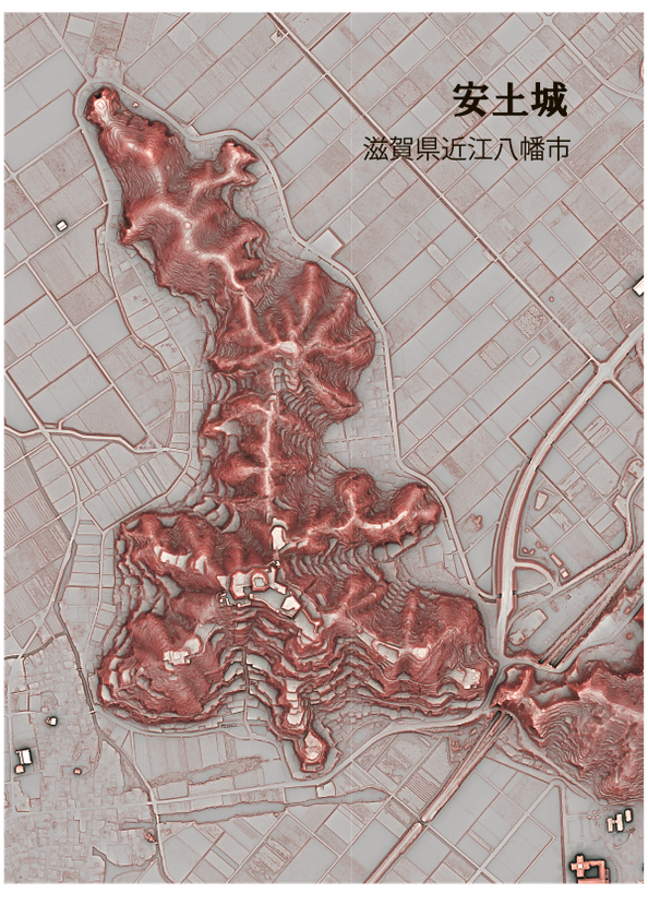 赤色立体地図 安土城