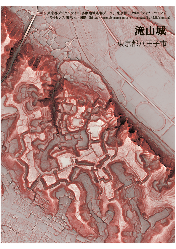 赤色立体地図 滝山城