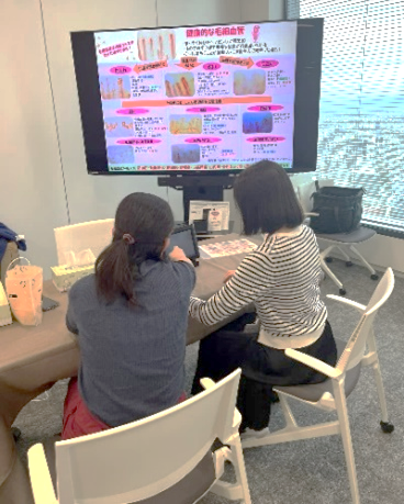 出張健康測定会では、糖化度や毛細血管の状態など、普段は意識しにくい身体の指標を“見える化”。測定結果をもとにスタッフがアドバイスを行い、グループ社員一人ひとりの健康意識の向上と行動変容を後押ししています。