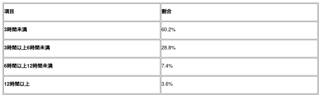 また、3時間以上利用する層が一定数存在していることから、外出先においても調べ物や連絡に限らず、複数の用途でインターネットが活用されている実態がうかがえます。