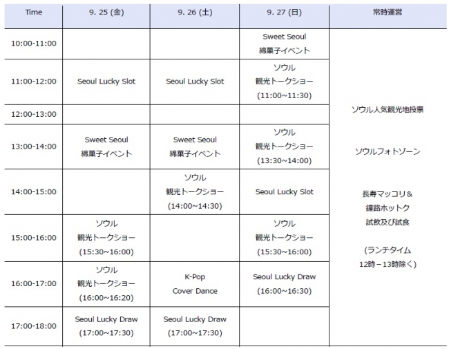 更に、観光客にソウルの楽しさを感じてもらう為に、ソウルの観光地に関するトークショー、屋台コーナー、綿菓子プレゼント、景品抽選会などさまざまなイベントも同時開催いたしました。屋台コーナーでは、ソウル名物であるホットクとマッコリを提供し、ソウル市館を訪れる来場者の皆様にソウルの味と食文化を楽しんでいただきました。