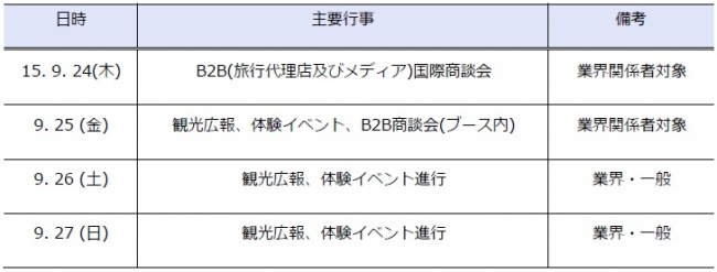 韓国・ソウル市ではマーズ(MERS中東呼吸器症候群)の終息宣言以降、ソウル観光の再生に向けた取り組みを続けておりますが、この度2015年9月26日・27日に開催された日本最大規模の観光旅博である『ツーリズムEXPO2015』に初めて参加致しました。『ツーリズムEXPO2015』当日は、ソウルの新規観光資源や、秋・冬季シーズンにソウル市で開催される祭り情報、ソウル市の観光インセンティブ制度などに関する情報を展示し、多くのご来場者様にお越しいただきました。