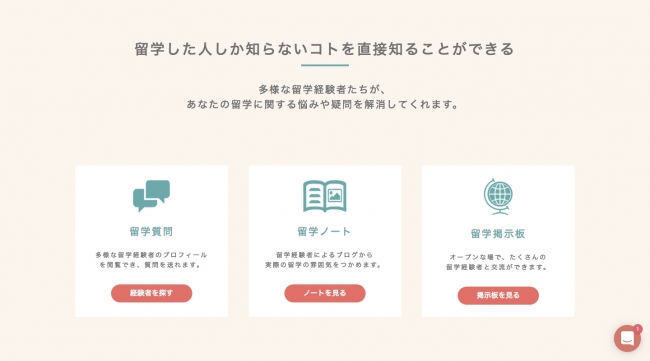1. 留学先100ヶ国1000人以上の留学経験者に直接質問を送れる