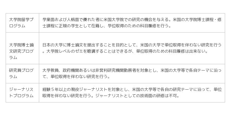 募集要項(詳細)、最近の奨学生リストなどは https://www.fulbright.jp/scholarship/index.html をご覧ください。