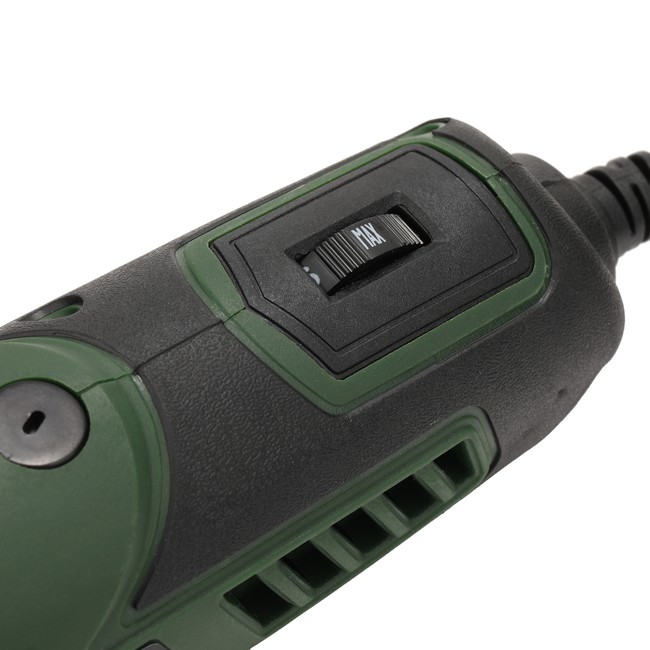 最大33,000回転まで調整可能なダイヤル式の無段変速を搭載し一般的な低回転ホビールーターと比較して作業の幅も広がり快適な作業が可能です。