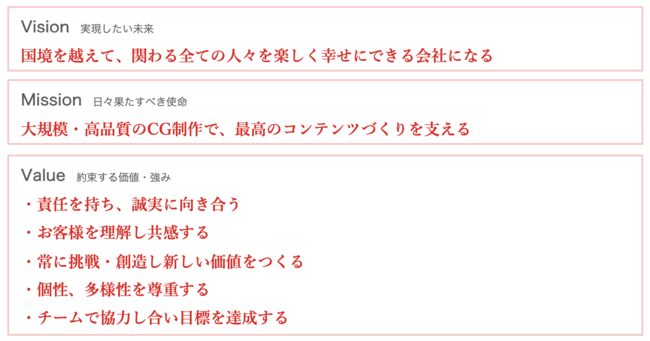 今、コンテンツビジネスの変革期にあり、様々な業界スタイルの構造変化が起きている中で、CGプロダクションのあり方も変えていかなければならない時期になっています。「CGをつくる会社から、体験をつくる会社へ」。CGを使った今までの経験、実績を活用し、あたらしい「モノヅクリ」ができる会社としてアジアのリーディングポジションをとれるようチャレンジを行っていきたいと思います。