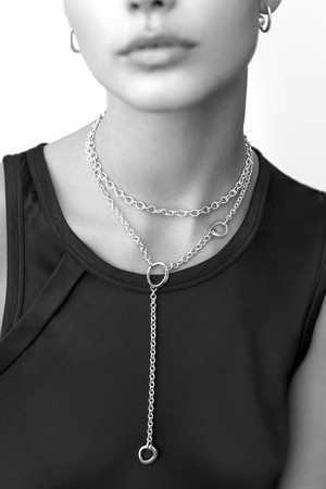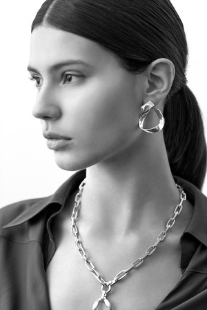 ソリッドでボリュームのあるチェーンは、緩やかな弧を描きモードで洗練された印象に。