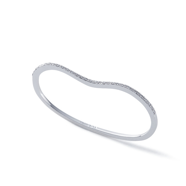 華やかな輝きを放つビーンズシェイプのダブルフィンガーリングは、極限までダイヤモンドセッティング部分の幅を細くしてモード感を際立たせます。