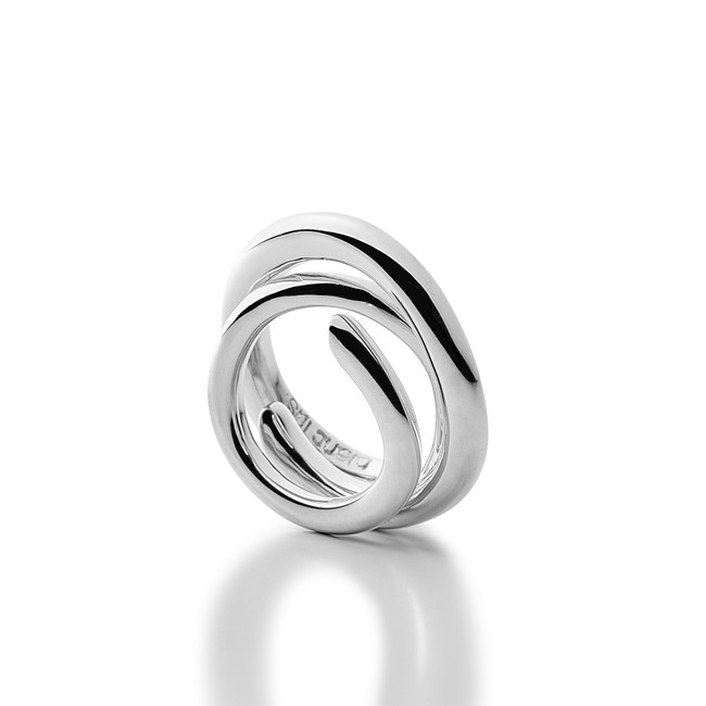 不規則なサークルが重なり形作られたデザインは、それらの高低差やフォルムのギャップが身につけた時にモダンな存在感を醸し出します。