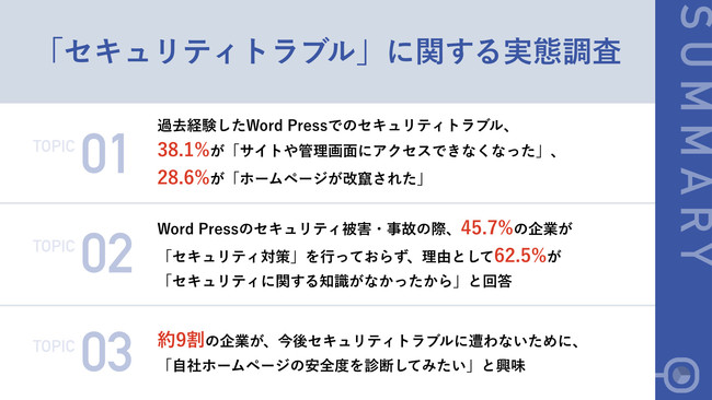 Word Pressのセキュリティ被害・事故の際、45.7%の企業が「セキュリティ対策」を行っておらず