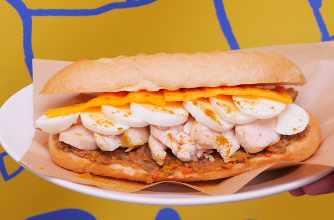 具材:塩麹バケット、無塩バター、有機野菜のベジタブルキーマカレー、チェダーチーズ、ゆで卵、低温調理した美桜鶏胸肉のスパイシーハムなど