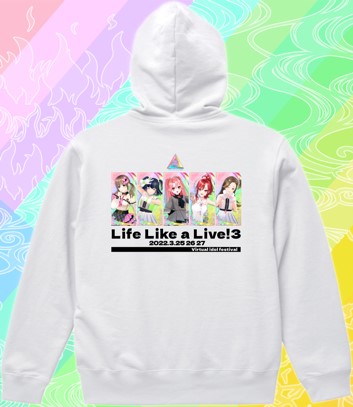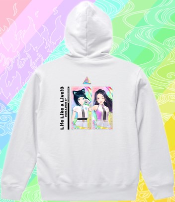 第一弾企画として、最先端のバーチャルアイドルONLINEライヴフェス「Life Like a Live!3(えるすりー)」とコラボレーションし、イベントのオフィシャルグッズを販売します。アイテムは、Tシャツやスマホケース、パーカーの全3型を展開。「Life Like a Live!」の参加メンバーによる世界観・ヴィジュアルを好きなキャラ・好きなレイアウトでカスタマイズしてお楽しみください。※参加メンバー:「GEMS COMPANY(ジェムズ カンパニー)」、「LiLYPSE(リリップス)」、「Palette Project(通称:パレプロ)」、「まりなす」他。