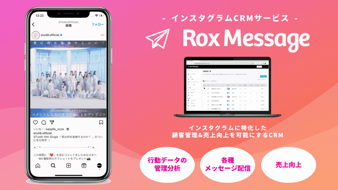 「Rox Message(ロックスメッセージ)」は、Rox株式会社により提供される SaaS型のインスタグラムCRMサービスです。