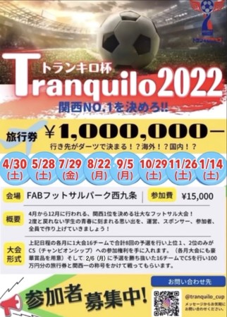 関西NO.1フットサルサークルを決める!トランキロカップが4月より開催!