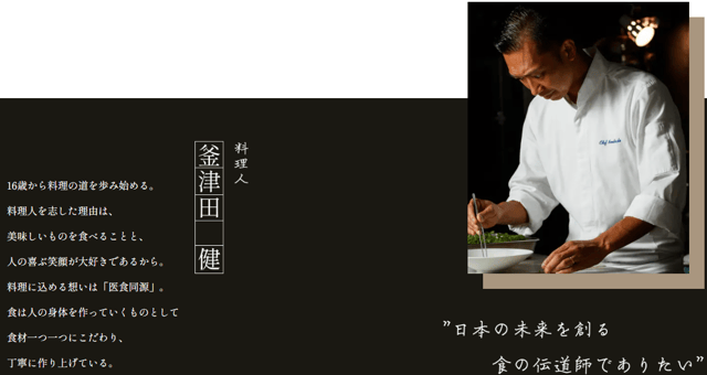 料理人歴25年で、著名人御用達店「釜津田」のオーナーシェフとして日々、食と真摯に向き合う巨匠、釜津田健の作品をMakuakeで先行販売いたします。