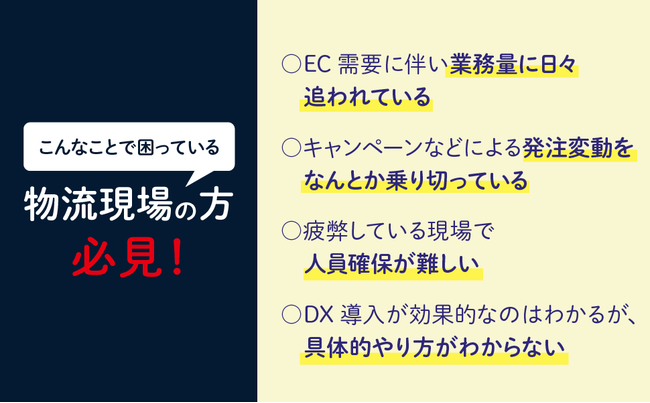急増し続けるECサービスにより、過大な負荷がかかる物流の現場。現場が抱える構造的な課題に向きあわなければ、疲弊するいっぽうで何も解決はしません!現場と荷主の透明性の高いデータ活用が、これからの物流倉庫の鍵を握っているのです。