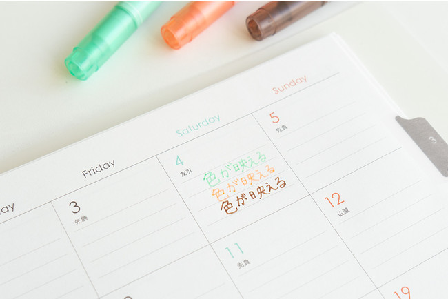 セプトクルールは 2020年に新素材を使用し、手になじむ素材と自分らし さを表現できるカラーが人気のアイテム。今回発売するダイアリーの罫線 の色は、“自分らしい色づかい”を引き立てる、ダークブラウンとオレンジ を採用しました。