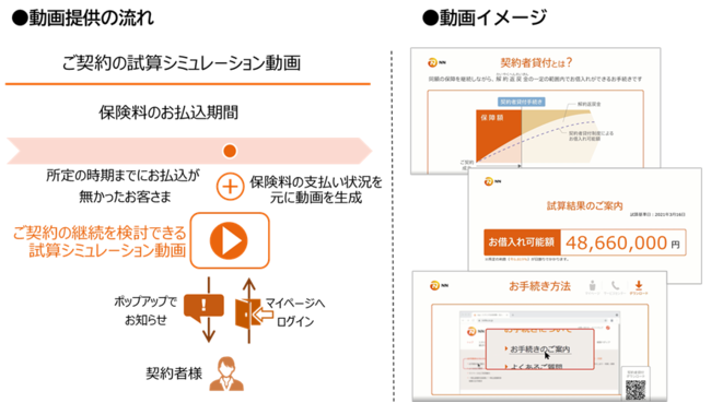 これにより、ご契約者様は郵送でのお知らせに加え、専門的な保険用語を分かりやすく解説した個別動画で、現在の契約内容を把握することが出来るようになります。