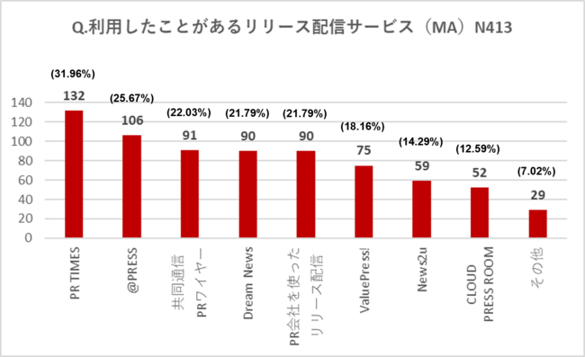 利用したことあるリリース配信サービス第1位は「PR TIMES」