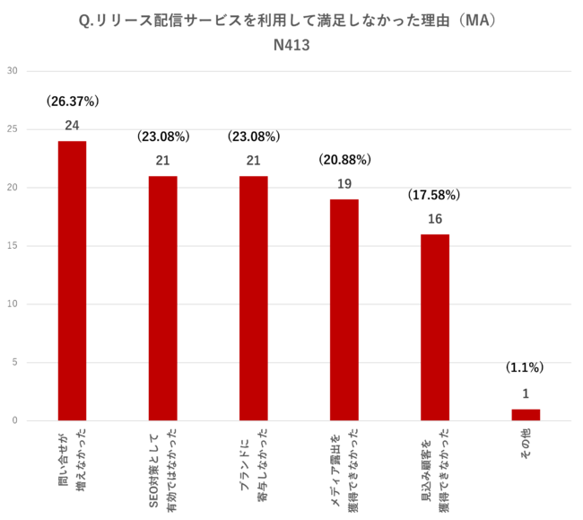 リリース配信サービスに満足していない理由1位は「問い合わせが増えなかった」26.37%