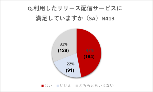 約半数がリリース配信サービスに満足していると回答