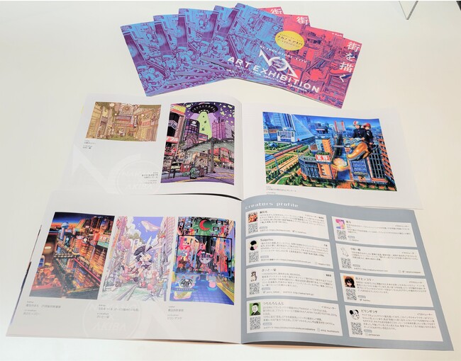 クリエイター作品や商店街オリジナルトレカを紹介するパンフレットを制作。商店街内や特設ギャラリーで無料配布する。