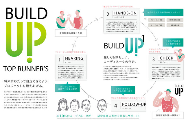 認定されたプロジェクトの事業化に向け、担当コーディネータが付き、事業戦略、販路拡大、資金調達などに関するコンサルティングを行うなど、 戦略的な経営ノウハウ提供等を中心としたソフト面での継続的サポート(ハンズオン支援)を実施します。
