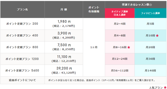 ※途中でのプラン変更はアップグレードのみ可。ダウングレードをされると権利が消失します。(例: ポイント定期プラン400 ⇒ ポイント定期プラン800への変更はOK。この逆は不可。)