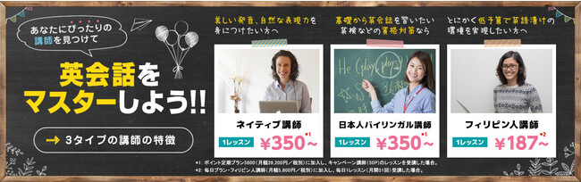 2016年9月1日からは、フィリピン人講師によるマンツーマン・レッスンも新たにスタート。これにより、エイゴックスはオンライン英会話業界では非常に珍しい【ネイティブ講師】【フィリピン人講師】【日本人バイリンガル講師】の3タイプにジャンル分けされた英会話講師陣から自由に希望のレッスンを選べる『オール・イン・ワン』サービスを開始しました。
