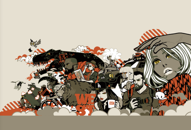 展示作品からは彼が商業ベースを活動の中心にしてきたクライアントワークでも、決して失われぬスタイルや、オリジナリティや、バロン目にこだわり流行を取り入れ進化する作品の表現、継続する意志の強さや、あらゆるテーマへ挑戦する姿などを垣間見ることでしょう。