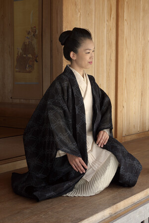 宮古島で育った「苧麻(ちょま)」という植物から糸を作り、藍染を施し限りなく黒に近い色まで染めを重ね、巧みな技術で折り上げた高級生地で作られる「琉装」。