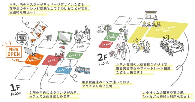 当社は、2021 年に鹿島セントラルホテルの運営母体である鹿島都市開発株式会社と「戦略的パートナーシップ業務提携」を締結し、ホテルで開催される実際のウェディング(結婚式や披露宴など)の撮影サポートやWEB および動画制作などを行っております。その為、ホテル全体が学びの場となり、受講生は当社OJT(現場実習)の一環として実際の現場を体験することができます。また当社が運営する鹿行水郷地域のポータルサイト「Locoty.com」や、当社と繋がりのある地元企業と連携を行うことで「地域創生&地域活性化」への取り組みとして、クライアントワークなど、講座以外でも様々なインプットとアウトプットが一体となった実践的な学びの場を提供いたします。