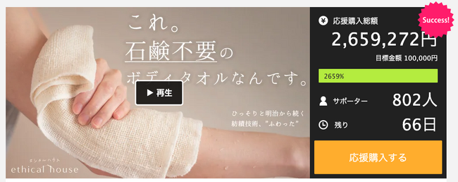 【開始2日で応援者500名突破!】水だけで洗える、新感覚ボディウォッシュタオル