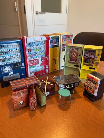 本物そっくり!自動販売機やレトロゲーム機、電話ボックスなど、紙や針金を用いて制作された、リアルなミニチュアペーパークラフトを展示。