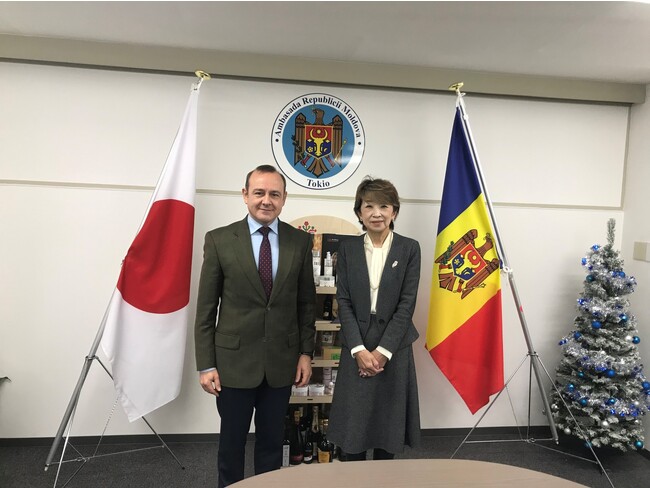 2021年12月モルドバ駐日大使館訪問時、ドゥミトル・ソコラン大使、吉田悦子ゼネラルマネージャー