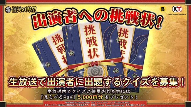 生放送内でクイズが使用された方には「えらべるPay」5,000円分をプレゼントいたします!