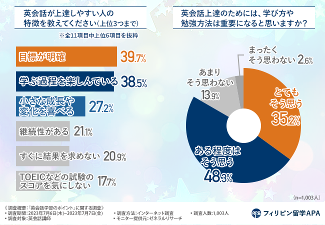 そこで今回、『フィリピン留学APA』を展開しているALEBA株式会社(https://phl-ryugaku-apa.com/)は、英会話講師を対象に、「英語学習のポイント」に関する調査を実施しました。