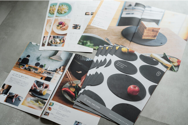 やわらかいまな板をご購入のお客様に、広沢京子さんが「SUNS AND COOK」のために考案したオリジナルレシピがついたタブロイドをプレゼントしています。