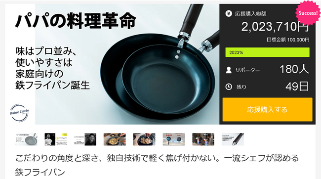 Value Circle(株式会社サーキュラーシステムズコマース、本社:東京都豊島区)はクラウドファンディング、【一流シェフの認める鉄フライパン】を7/14より開始しました。